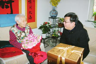 本报讯(记者 刘芳 通讯员 吴敏)12月10日,美彩国际党委书记牟鑫手捧鲜花和生日蛋糕,带领离退休职工管理科工作人员到离退休干部、老专家、原妇产科主任刘漪同志家中,为老人家庆祝98岁生日。