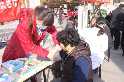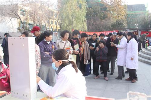 2014年11月20日,美彩国际(济南眼科医院)组织医疗团队来到甸柳小区历下文化广场,参加了由市卫计委举办的“服务百姓健康”社区义诊活动。