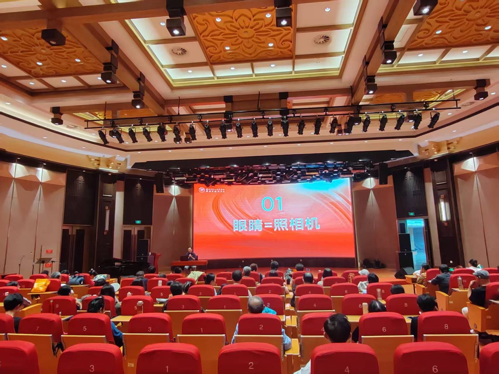 市眼科医院(市二院)眼八科(眼内科)副主任医师黄超以《守护心灵之窗——眼底病防治攻略》为题,为在场100余位老年学员带来实用眼健康知识。讲座重点讲解了老年人常见的眼底疾病,包括飞蚊症、糖尿病视网膜病变、黄斑变性等。黄医师特别强调,若出现“飞蚊”突然增多、闪光感或视野缺损等症状,需立即就医。针对糖尿病患者,黄医生指出严格控制血糖、血压和血脂是预防眼底病变的关键。他现场演示了使用Amsler方格表等自查黄斑病变的方法,并建议老年人定期进行眼底检查,建立眼健康档案。整场讲座图文并茂,语言通俗易懂,案例贴近生活,现场互动积极,学习氛围浓厚。
