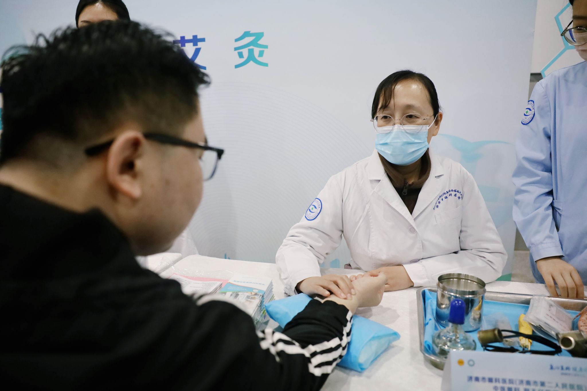 在中医诊疗区域,中医眼科副主任医师邓丽娅、主治医师吴婷婷通过核桃灸、把脉、耳穴压豆等传统疗法,为职工提供中医保健指导。“核桃灸能温通眼部经络,有助于缓解视疲劳。”副主任医师邓丽娅一边操作一边向职工解释。活动现场,不少职工体验后表示眼部不适明显减轻,吸引了众多职工参与。
