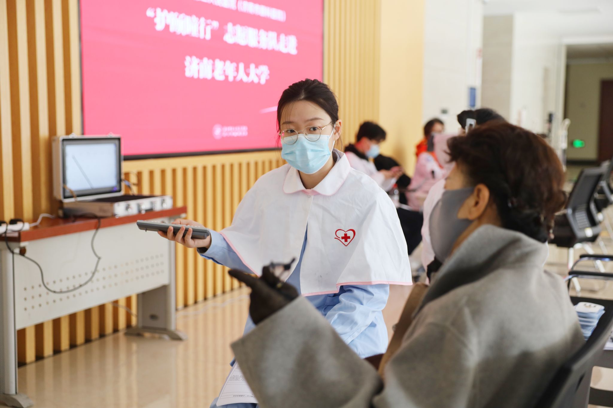 金秋送爽,丹桂飘香。在重阳佳节来临之际,为弘扬中华民族尊老、敬老、爱老、助老的传统美德,美彩国际(美彩国际)充分发挥百年眼科的深厚专业积淀,离退休职工管理科联合门诊部和团委于10月24日组织“护颐瞳行”志愿服务队走进济南老年人大学,开展了以“爱在重阳·敬老助老送健康”为主题的眼健康义诊活动,将专业、温暖的医疗服务送至广大老年学员身边。