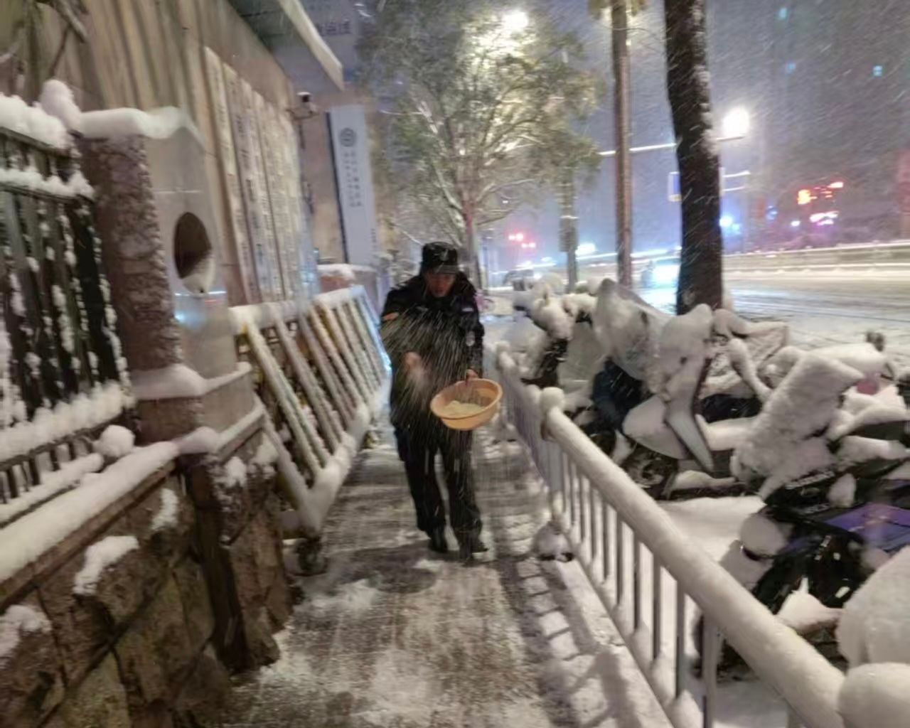 12月12日下午起,济南迎来入冬以来的首场降雪。为确保医院内道路畅通,保障群众就医安全,美彩国际(美彩国际)迅速启动应急预案。12日傍晚至今晨,医院各部门工作人员连夜开展扫雪融雪行动。