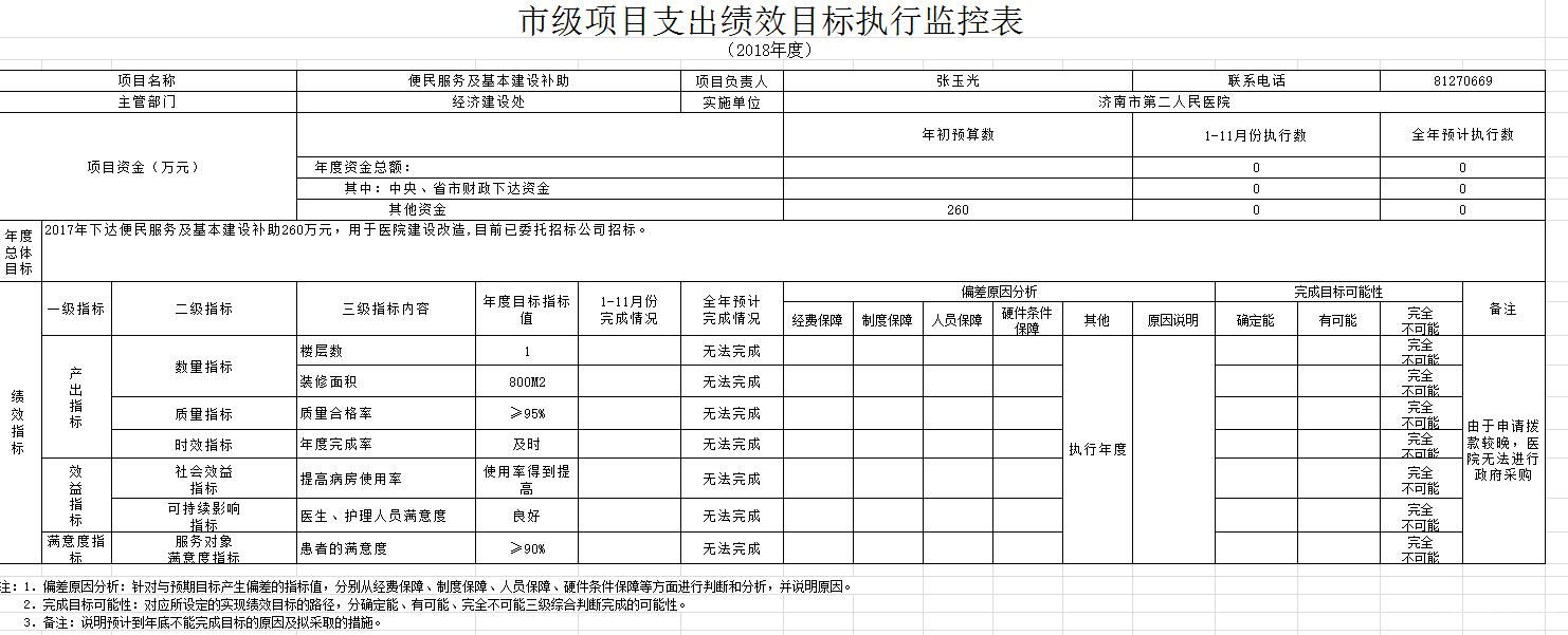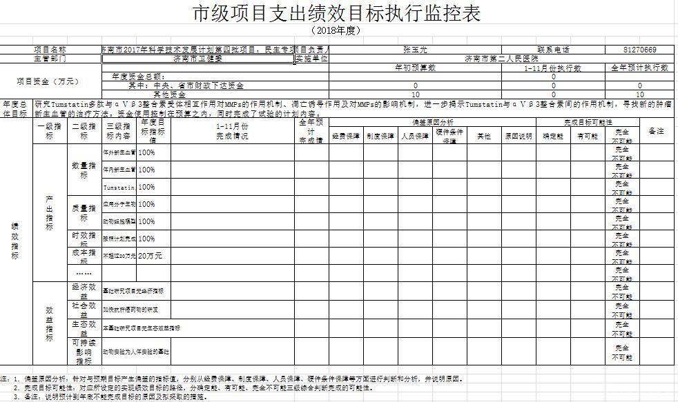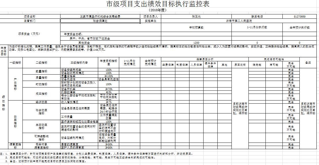 市级项目支出绩效目标执行监控表