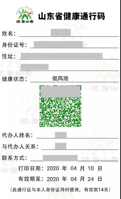 (一)山东省居民可直接点击“健康通行卡”栏目,选中“通行码申请”按照提示,仅需填写姓名、证件类型、证件号码、手机号码、国籍(地区)、居住地址、14 天内接触史7 项基本信息,并做出承诺后,即可领取健康通行码。