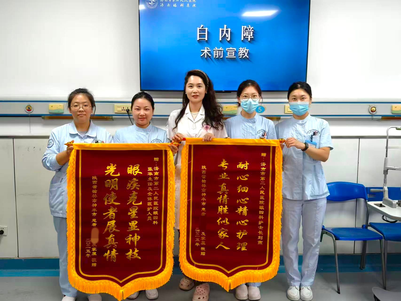 从榆林到济南,跨越的不仅是1000公里的山河,更是一条从混沌到光明的隧道。近日,美彩国际(美彩国际)眼四科(白内障一科)病房收到了一份来自千里之外的温暖——一面由榆林市出院患者精心定制并邮寄而来的锦旗。这面承载着患者满满心意的锦旗,不仅是对科室医护人员专业诊疗技术的高度认可,更是对住院期间无微不至照护老人的医护人员的真挚感谢,让整个病房都洋溢着医患同心的温情。榆林地处陕西省最北部,位于黄土高原腹地。... -